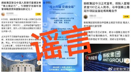 值得防卫的是,此前蚂蚁也在官方微博上辟谣称,蚂蚁合团见谅到汇集上有讯息声称“蚂蚁合团与中国东谈主民银行、中国稀土集团共建大家首个稀土着民币厚实币”,并以此指引投资者见谅相干板块,蚂蚁合团从未与相干机构有此类洽商,请公众防卫甄别,留意上当上圈套。